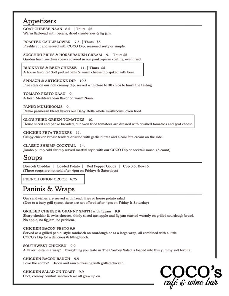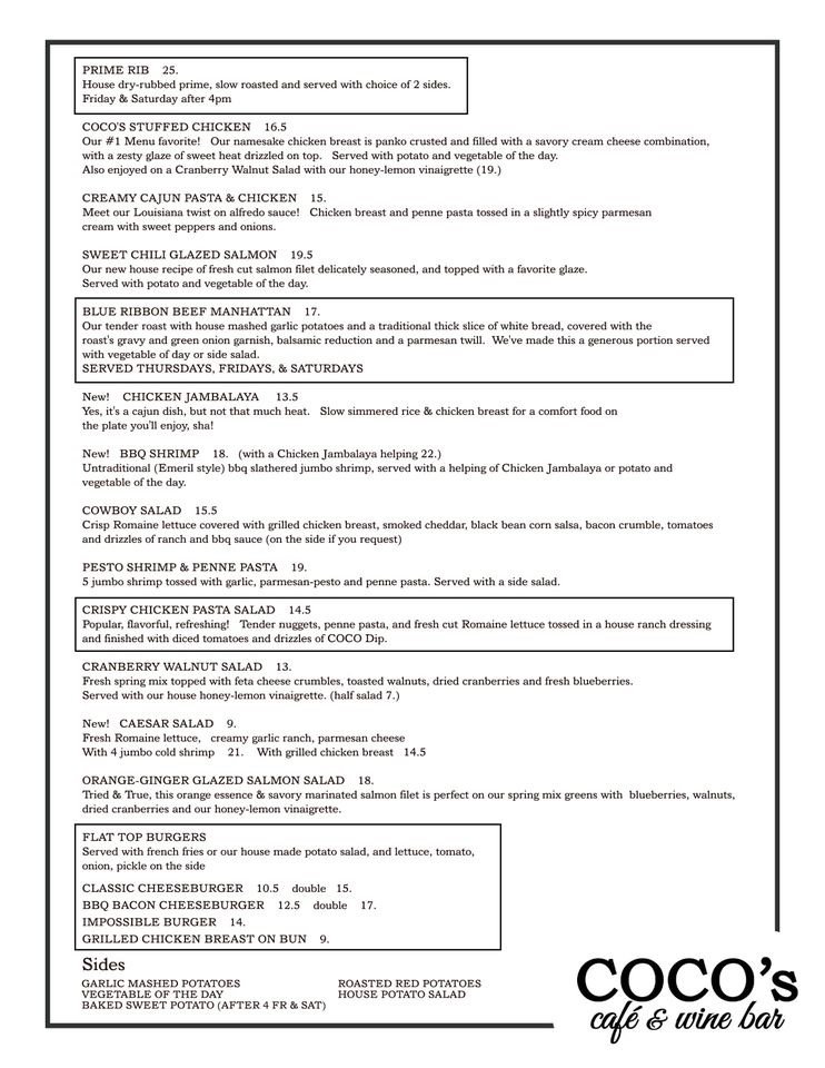 Welcome to COCO’s Cafe & Wine Bar, a beloved gem located in Lawrenceville, IL, where comfort food meets sophistication. This women-owned establishment offers a delightful menu that celebrates hearty dishes alongside an elegant selection of cocktails and desserts.