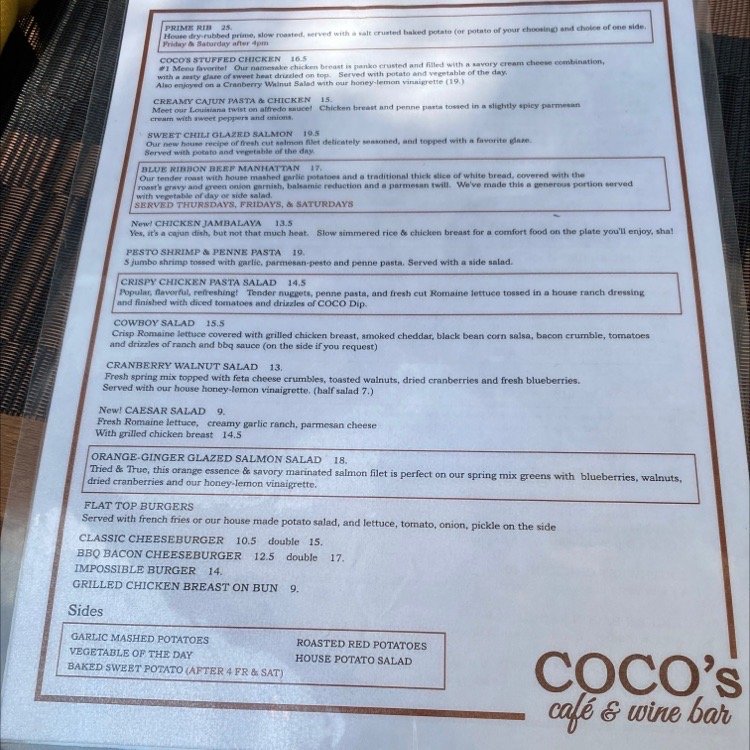 With options ranging from takeout to outdoor seating, the cafe is not only accessible but also incredibly welcoming. Experience comfort and class at COCO’s, where every dish tells a story and every visit feels special.